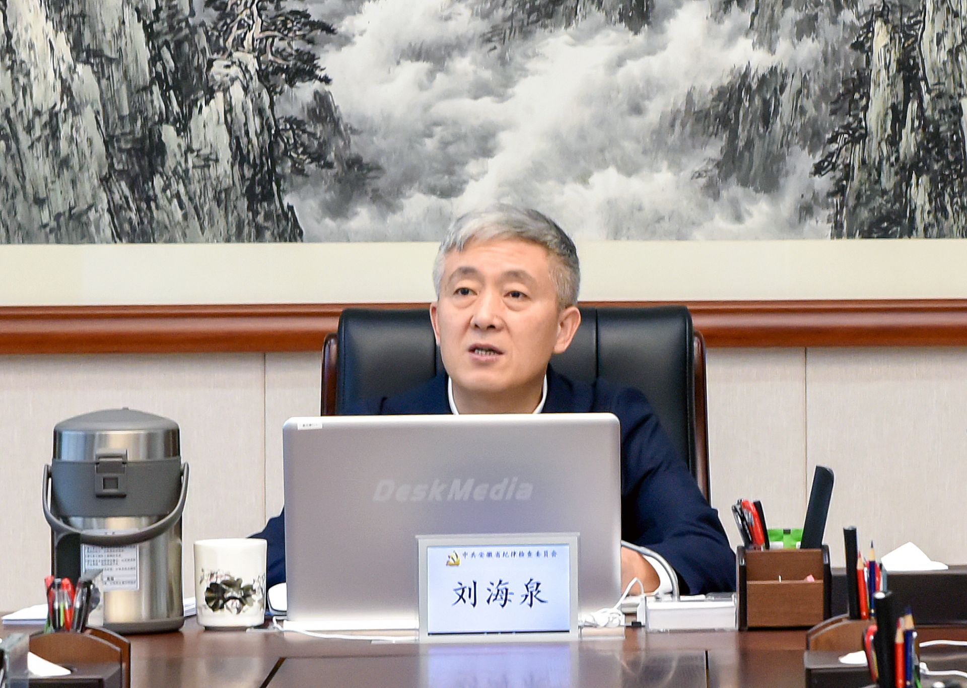 图为省委常委、省纪委书记、省监委主任刘海泉主持会议