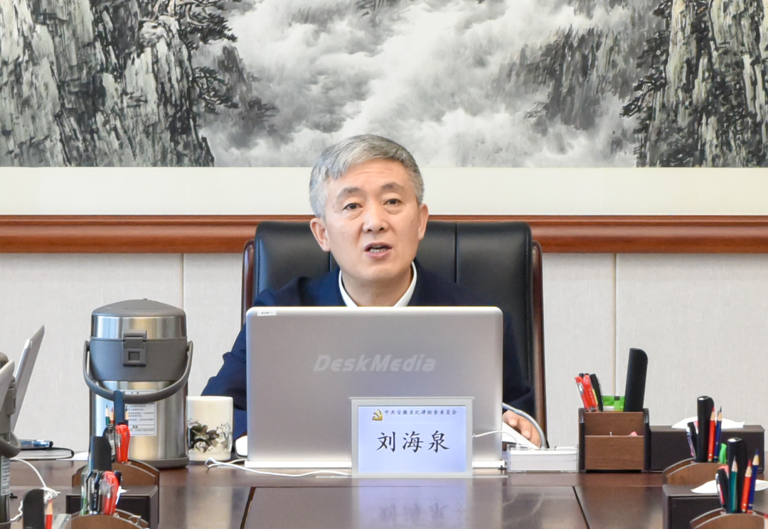 图为省委常委、省纪委书记、省监委主任刘海泉主持会议并讲话