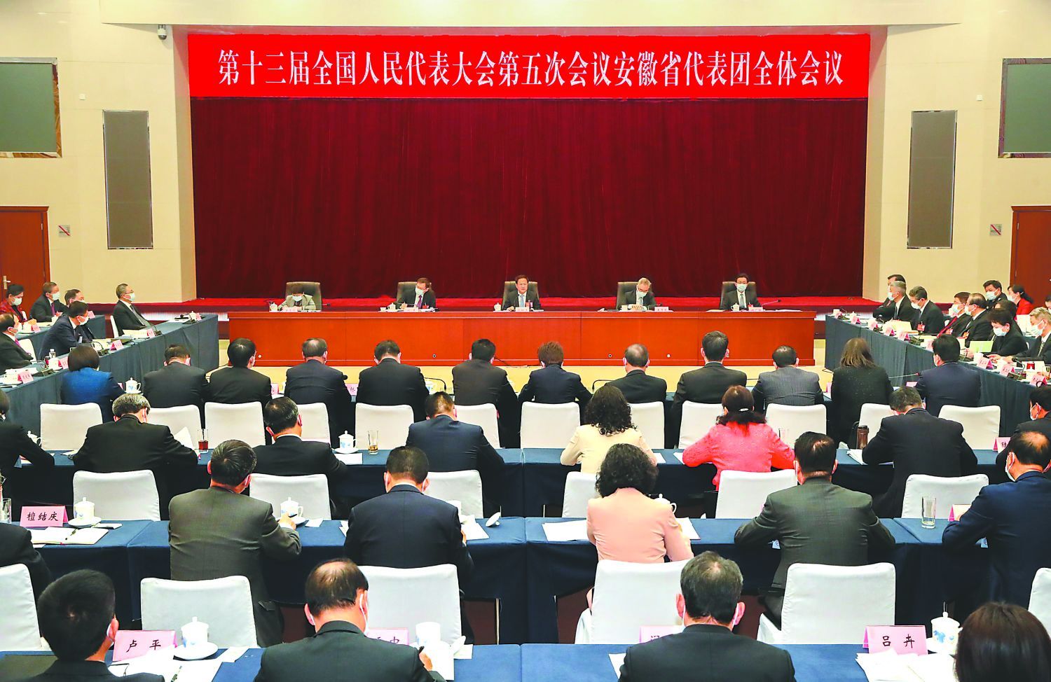 十三届全国人大五次会议安徽代表团3月8日下午举行全体会议,传达学习习近平总书记在参加内蒙古代表团审议、看望参加政协会议的农业界社会福利和社会保障界委员、出席解放军和武警部队代表团全体会议时的重要讲话精神。全国人大代表、省委书记、省人大常委会主任郑栅洁主持会议并讲话。他强调,要从衷心拥护“两个确立”、忠诚践行“两个维护”的高度,把学习贯彻习近平总书记重要讲话精神作为重要政治任务,深入学习领会,紧密结合实际,抓好贯彻落实,奋力谱写现代化美好安徽建设新篇章,以实际行动和优异成绩迎接党的二十大胜利召开,坚决做到“总书记有号令、党中央有部署,安徽见行动”。全国人大代表、省长王清宪传达习近平总书记重要讲话精神并发言,代表团副团长刘惠、谢广祥、王翠凤出席会议,孙正东、张冬云、张莉等代表发言。