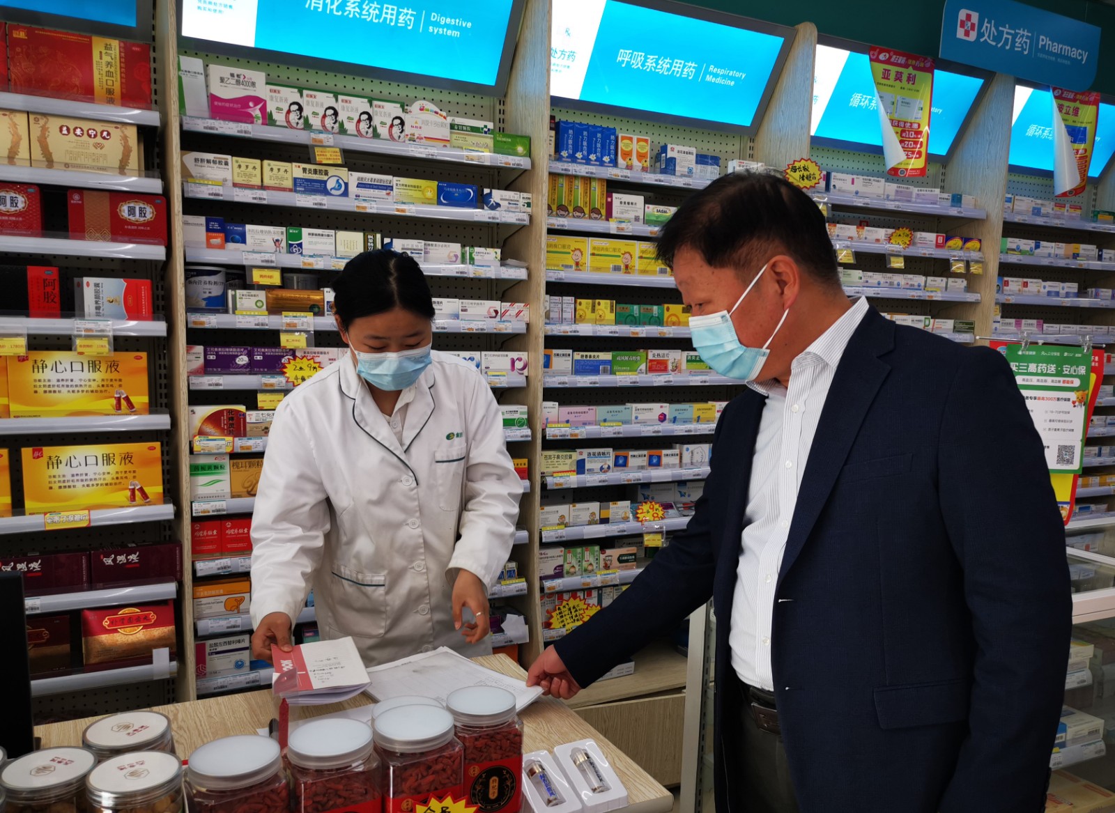 淮上区纪委监委以“四不两直”方式深入区内各大菜市场、药店、卫生院、社区等人员聚集场所实地督查常态化疫情防控工作,详细了解来(返)淮人员排摸、公共场所环境消杀、验码测温、应急值守等各项防疫措施落实情况。图为该区纪检干部在吴小街镇某药店督导检查“一退两抗”药品停售以及经营场所消杀、药店从业人员测温、无码购药人员登记等疫情防控措施落实情况。(蚌埠市纪委监委)
