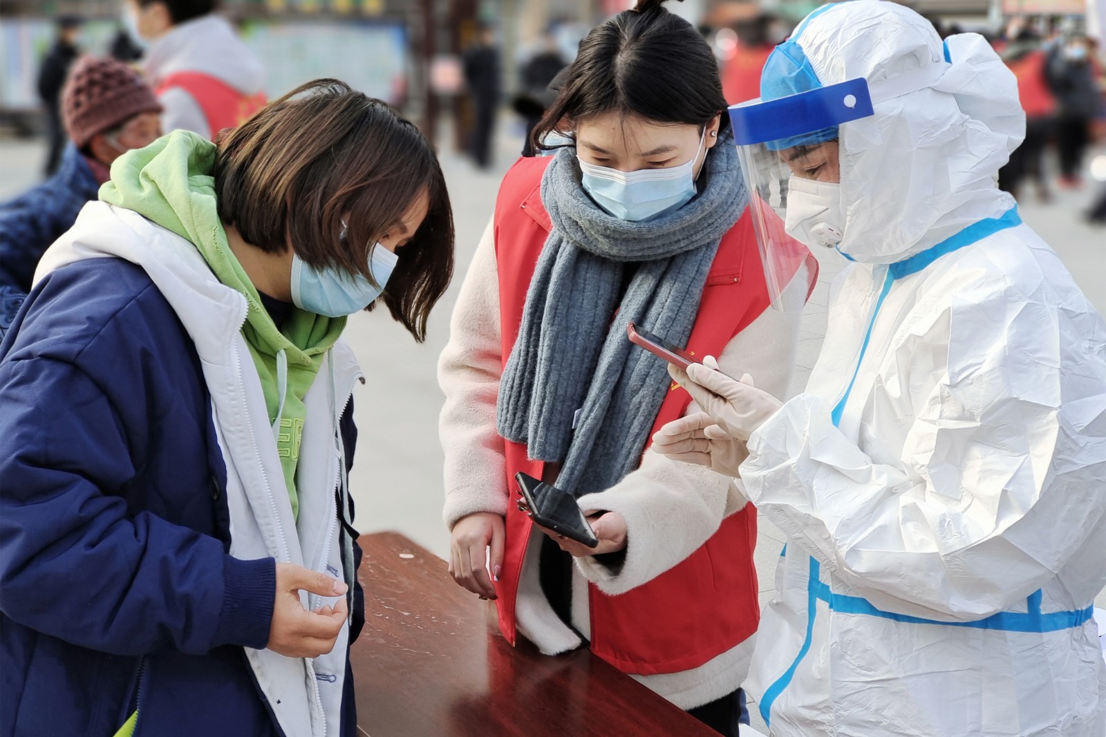 固镇县纪检监察干部“督”“战”结合,既对全县疫情防控责任落实情况开展督查,又深入防疫一线当好“宣传员”和“志愿者”,以实际行动构筑起守护人民群众健康安全的“铁军”防线。图为该县纪检干部协助社区工作人员对过往车辆、人员进行扫码登记、测量体温,并向居民宣传疫情期间预防知识,提高群众防范意识,做好个人防护。