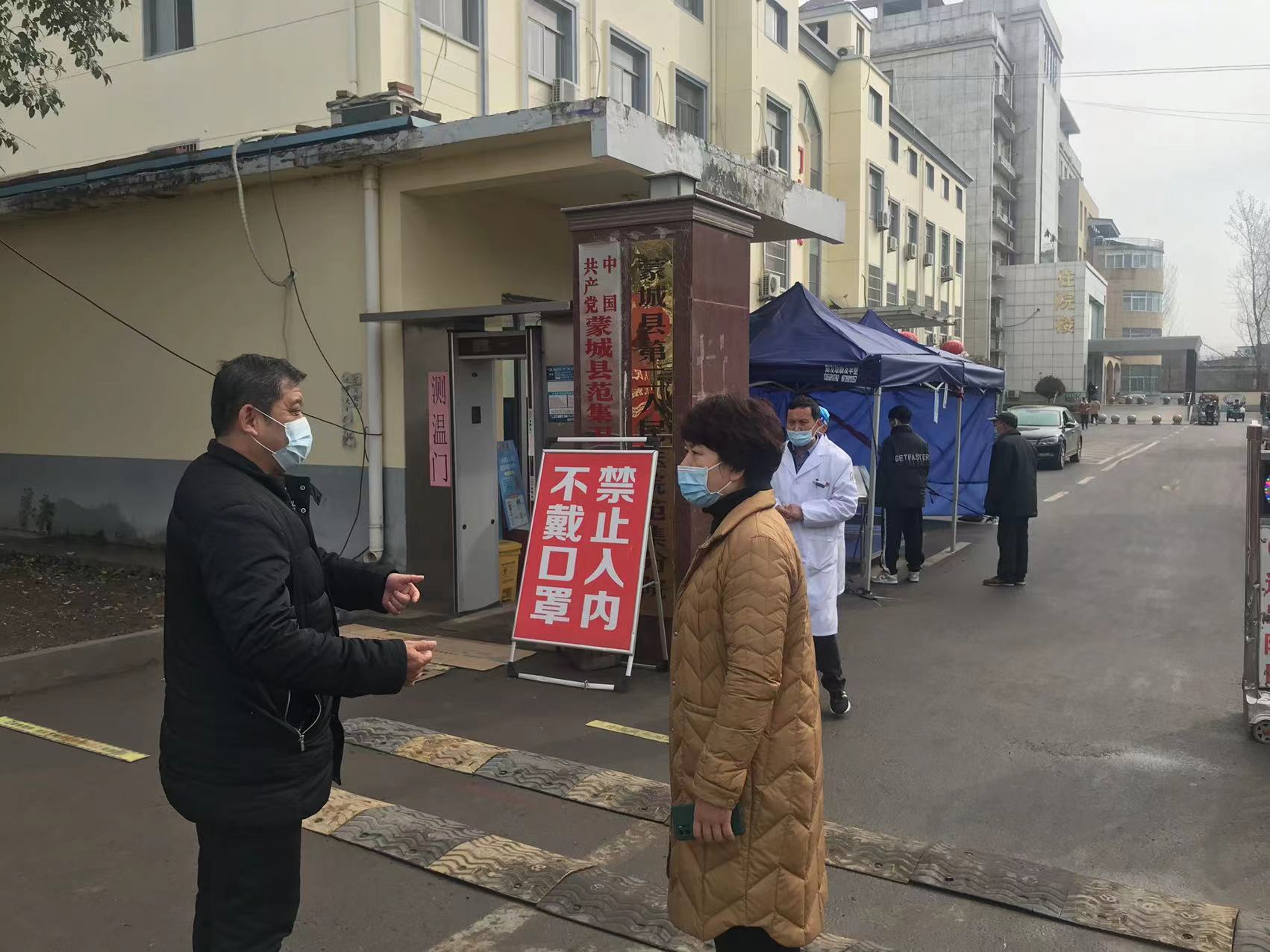 蒙城县纪委监委深入镇村开展疫情防控督查,重点查看重点场所疫情防控措施是否落实到位,询问返乡人员劝导登记情况,图为该县纪检监察干部在蒙城县第四人民医院督查。