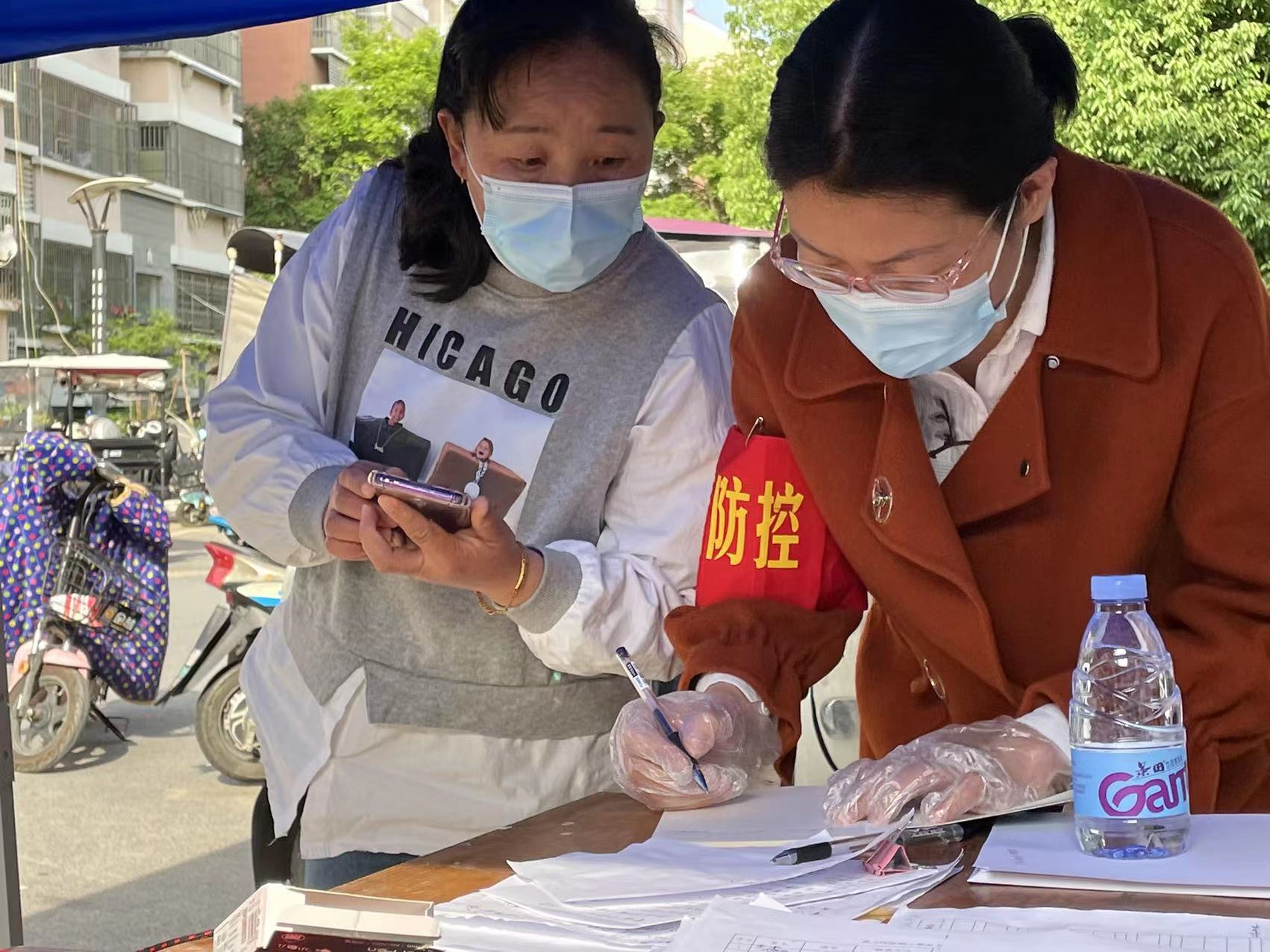 利辛县纪检监察干部化身“志愿红”,为小区人员进行登记。