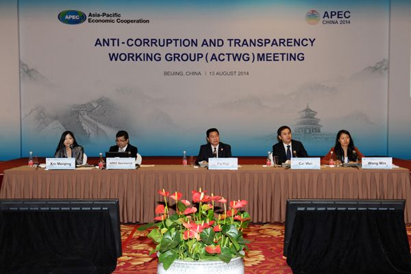 2014年中国担任APEC反腐败工作组主席并主办工作组会议,引导工作组通过《北京反腐败宣言》等重要成果。