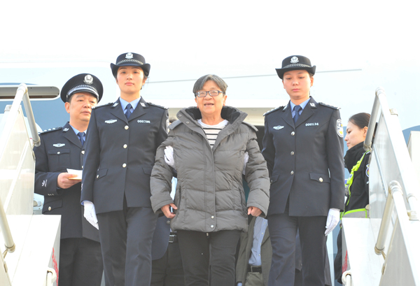 2016年11月16日,潜逃海外13年之久的“百名红通人员”头号嫌犯杨秀珠回国投案自首。(中央纪委监察部网站 张祎鑫 摄)