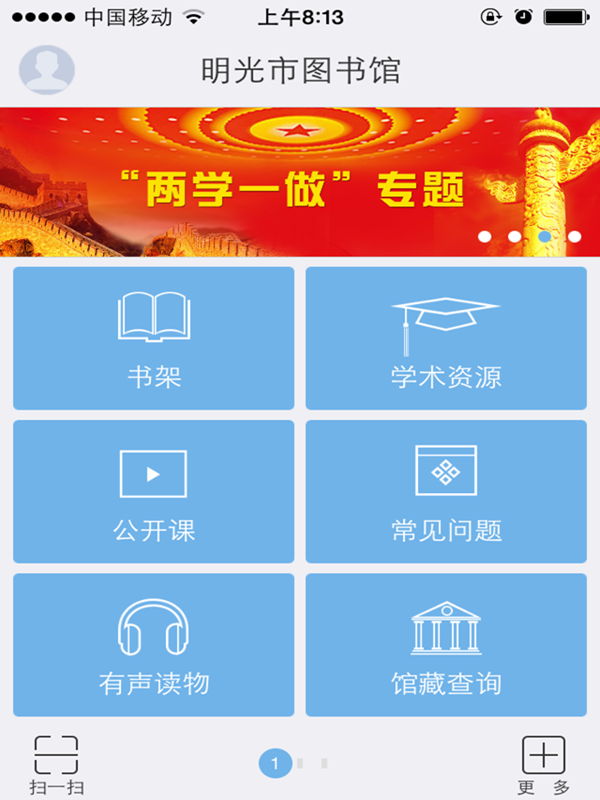 明光移动图书馆是明光市图书馆专门为持证读者制作的专业移动阅读平台,用户可在手机、pad等移动设备上自助完成个人借阅查询、馆藏查阅、图书馆最新咨询浏览,同时拥有超过百万册电子图书,海量报纸文章以及有声读物、视频、讲座等,为用户提供方便快捷的移动阅读服务。持证读者扫一扫下载APP,用证号登录,输入原始密码6个1即可畅享阅读、随时学习,目前已经拥有正式用户1000余名,为全市党员干部和广大市民提供了一个随时随地学习的“便捷通道”。(滁州市纪委)