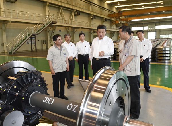 22日下午,习近平在太原考察了太原重工轨道交通设备有限公司和山西钢科碳材料有限公司。在太原重工轨道交通设备有限公司,习近平察看车轮车间、盾构机车间,同锯切线控制室、锻轧控制室和作业现场的职工交流,了解企业提升轨道交通装备研发、设计、制造能力情况。随后视察山西省在装备制造、电子信息、节能环保、新材料、现代煤化工等方面的企业自主创新成果展示,听取全省推动资源型经济转型发展、培育创新体系整体情况汇报。习近平指出,推动传统产业转型升级,必须坚持以企业为主体,以市场为导向,以技术改造、技术进步、技术创新为突破口。要支持企业创新产业组织形态,瞄准国际国内先进标杆全面提高产品技术、工艺装备、能效环保等水平。习近平希望该企业用好我国交通发展和推进“一带一路”建设的历史性机遇,在技术创新和品牌建设上创出更大的天地。