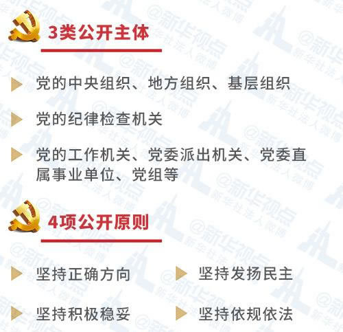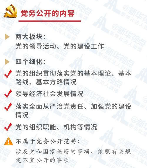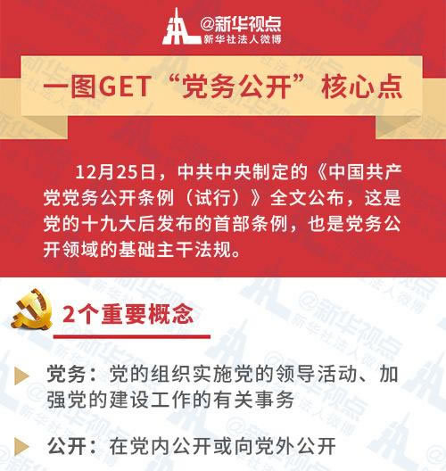 中共中央制定的《中国共产党党务公开条例(试行)》25日全文公布,这是党的十九大后发布的首部条例,也是党务公开领域的基础主干法规。“公开什么”“向谁公开”“如何公开”……想速览条例说了什么,就看这张图: