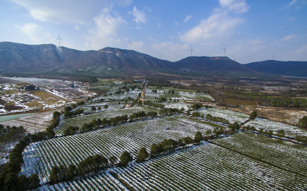 蓝天如洗,远山如黛;细垄茶园,阡陌纵横。积雪下的嫩芽正在孕育,预示着又一个好收成。