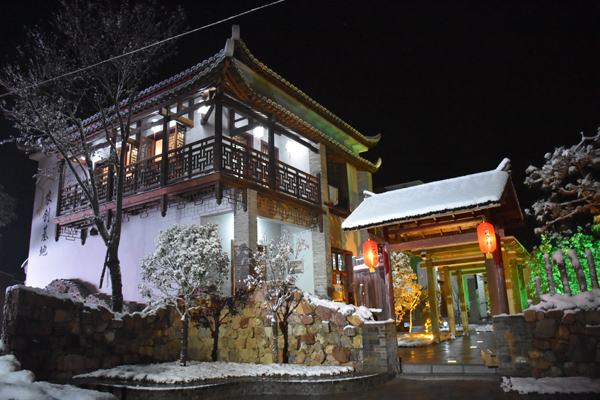 乡村小院,三瓜公社。斗拱凸显的古朴,积雪点缀的灵动,这里是电商、农创、乡旅的交流中心,这里是半汤国家级旅游度假区的核心,是安徽省旅游小镇建设的标杆。