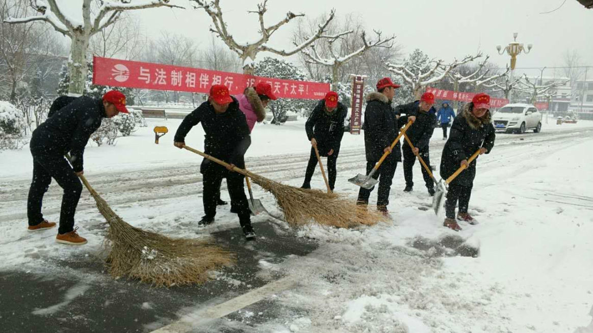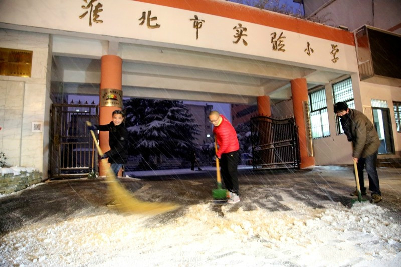 为了孩子们顺利到校,市实验小学的老师早早赶到学校清扫校门口的积雪