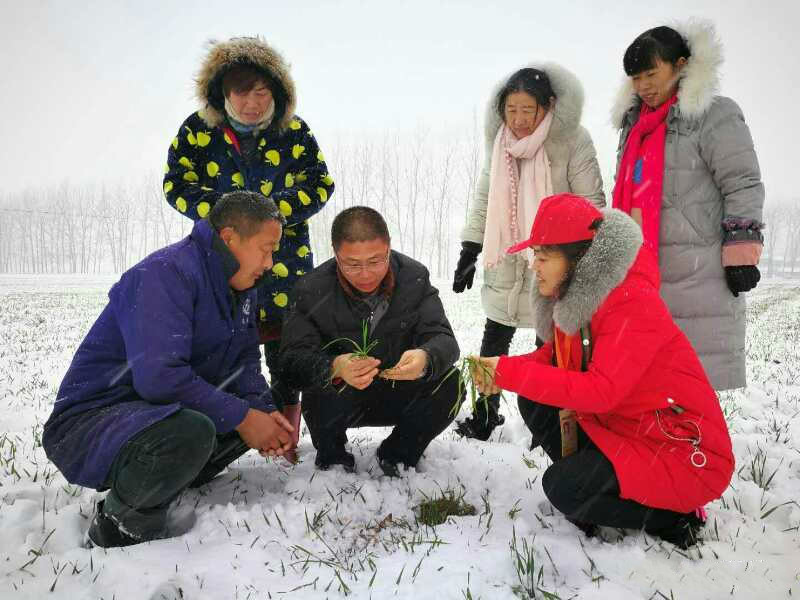 瑞雪兆丰年,农技人员冒雪查看农作物长势情况
