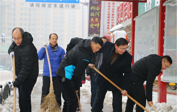 为保障人们的出行安全和环境整洁,固镇县积极开展志愿服务活动,让广大市民在寒冷的冬日里感受到满满的温暖和正能量。图为志愿者参加义务扫雪活动。