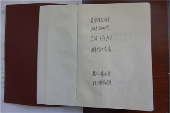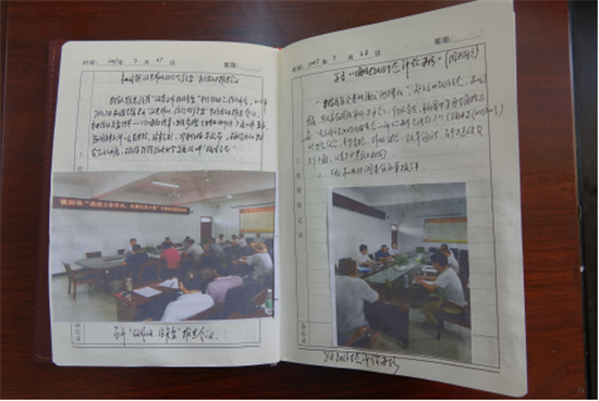 纪检干部们与群众的每一次沟通,与基层干部们的每一次交流,每一项政策的落实与执行,都记录在这本小小的笔记本上。一行行文字,一张张照片,汇聚成了一股普通却又扎实的绳索,紧紧连系着纪检干部和群众,正稳步前行!