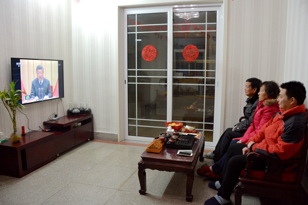 纪检干部与家人围坐电视前共同收看新闻联播,全会精神鼓舞着纪检监察干部要以更坚定的决心、更严格的标准、更强烈的担当将全面从严治党这场自我革命进行到底。