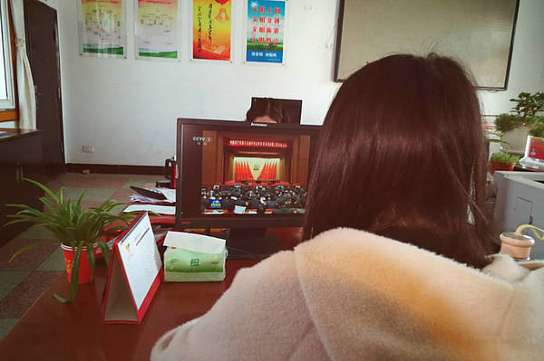 双河镇干部利用空暇时间收看十九届中央纪委二次全会会议开幕新闻