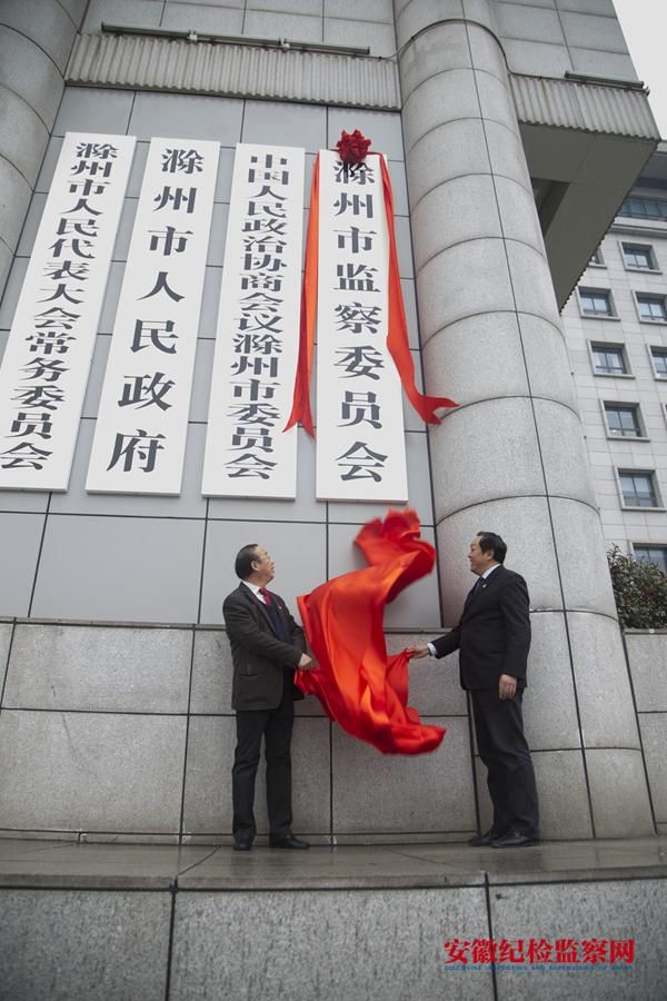 1月16日上午,滁州市监察委员会正式挂牌成立,标志着滁州圆满完成市、县两级监察委员会组建工作。滁州市委书记张祥安,滁州市委常委、市纪委书记、市监察委主任李玉平共同为监察委员会揭牌, 市委副书记、市长许继伟主持揭牌活动。