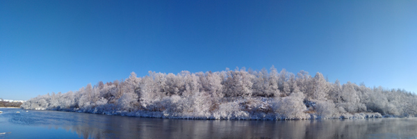 寒意深重,万物冰封;苍穹如洗,云霞难觅;流水凝噎,层林白头。远望去,巨大的冰镜倒映着苍蓝天空,郁郁迭迭的丛林披霜戴雪,化作无数玉树琼枝,点缀在天地之间。
