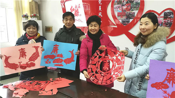 一幅幅大红色的窗花跃入眼帘,甚是喜庆。朵朵剪出来的莲花状、梅花状的“廉”字图案烘托出廉洁的氛围,居民们用手中的剪刀,剪出了心中的廉政世界,也表达了老百姓的愿望。最后将剪好的喜庆而又包含警醒寓意的窗花送进居民家,装点节日氛围,倡导过一个清正廉洁的传统节日,让年味更增“廉”味。