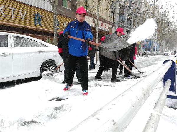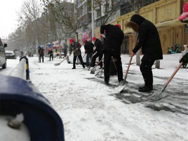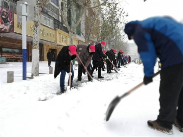下午两点半,市纪委机关全体党员干部集中到包保路段开展扫雪除冰工作,大家佩戴党员志愿者服务红袖章,手拿扫帚、铁锹等工具,认真打扫,清除积雪。