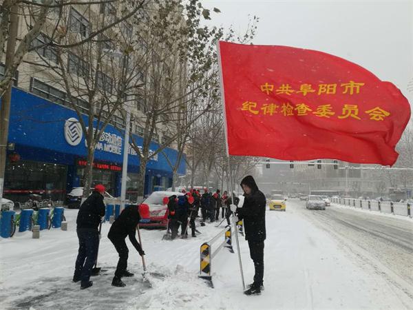 第二场暴雪再次来袭,为响应市文明委倡议,1月25日下午,阜阳市纪委高度重视,立即安排、迅速行动,组织机关全体党员干部上路进行“扫雪除冰”。
