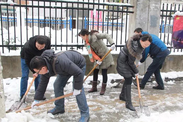 1月25日下午,蜀山区纪委、监察委的14名党员干部,来到锻压机床厂宿舍,与稻香村街道等单位一起,清理路上积雪,避免结冰,让道路畅通,保障人们出行安全。有人用铁锹铲除厚厚的冰雪,有人用竹竿打落树上的积雪,有人将散落的残雪堆到路边,大家齐心协力,干得热火朝天。经过一个小时的劳动,将冰雪基本清理干净。严寒暴雪至,情意暖人心。纪检监察干部们用自己的实际行动清除积雪,便民出行,谱写了一曲2018年雪中情。