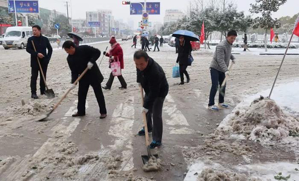 这两天,合肥市迎来今冬第二场雪,此次降雪雪情紧急、雪量较大,给广大市民的交通出行和生产生活带来诸多不便。全市各地纪检监察干部积极响应市政府发出的倡议书,迅速行动起来,加入到扫雪除冰大队中。