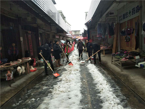 新田镇组织纪检监察干部在农村街道扫雪护行