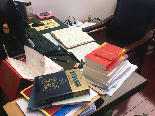在芜湖市三山区纪委监察委第一纪检监察室,办公桌上摆满了书籍资料。工作闲暇时,大家时而低头苦学,时而相互交流工作学习心得。