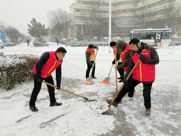 党员志愿者开展积雪清扫工作,确保城乡居民安全出行和正常的生产生活秩序。