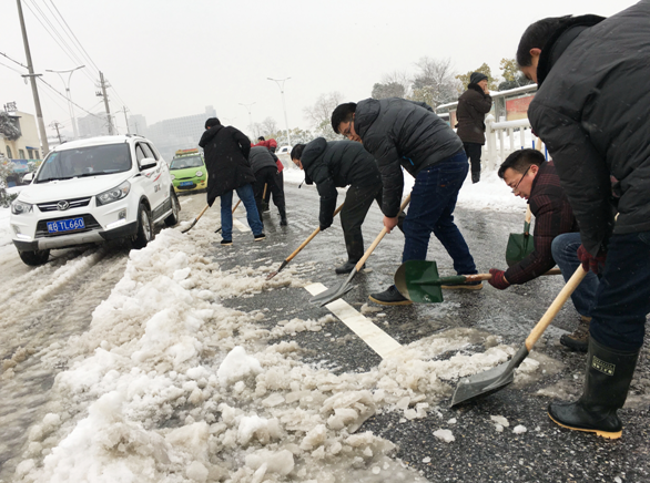 县纪检监委广大党员干部心系群众平安,纷纷走上街头,拿起铁锹等除雪工具投入到抗击暴雪冰冻第一线,战严寒除冰雪,以实际行动践行党的十九大精神。