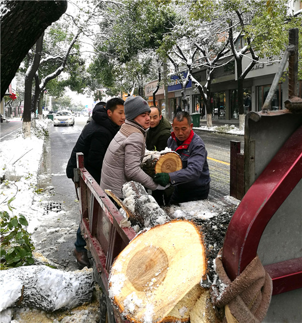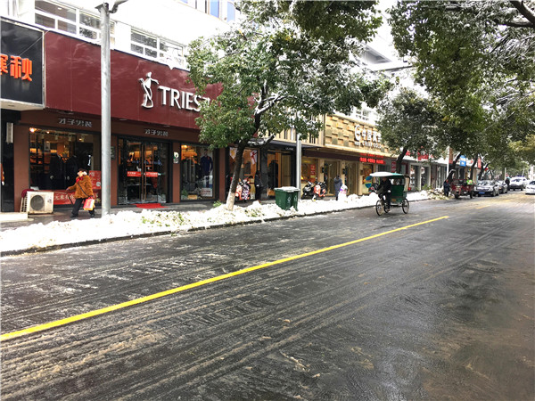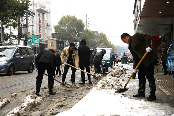 县纪委、监委以及县委巡察办全体工作人员冒着严寒前往城区街道扫除积雪。