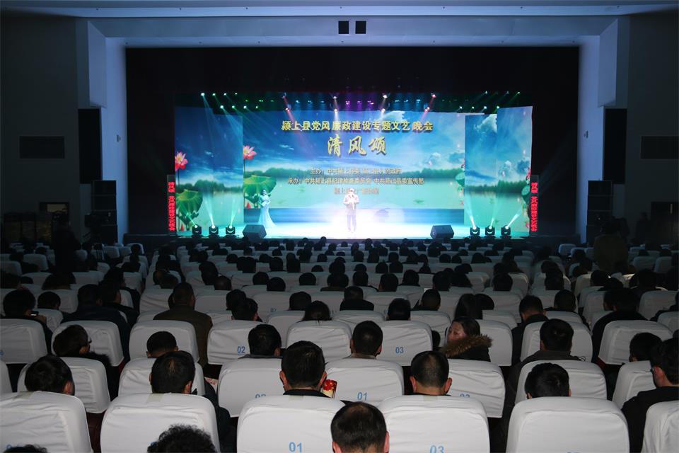 为贯彻落实党的十九大提出的“加强纪律教育,让党员干部知敬畏、存戒惧、守底线,习惯在受监督和约束的环境中工作生活”的要求,展示颍上县近年来党风廉政建设工作成果,县纪委监委会同宣传部、文广新(体)局承办的党风廉政建设专题文艺晚会“清风颂”1月29日晚在颍上县群众剧场精彩上演,全县600余名党员干部现场观看了晚会,微信公众号“TV颍上”、“慎微”实行同步直播。