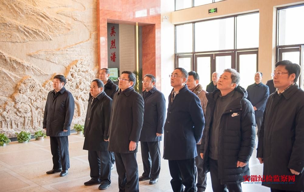 图为省委常委、省纪委书记、省监委主任刘惠带领大家瞻仰省革命烈士事迹陈列馆