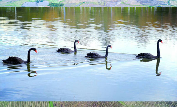 寒气消融,两岸渐生春草;水色玲珑,倒映青天如玉。一群天鹅结伴而来畅游嬉戏,为春天唱响登台的序章。