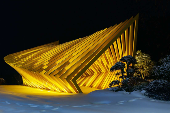 夜幕下的殷港小镇雕塑作品别具韵味