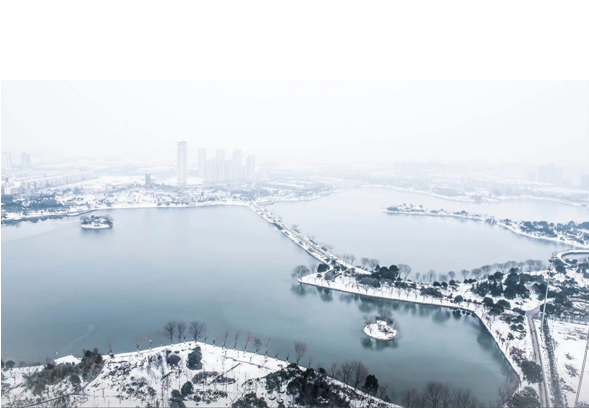 东湖公园银装素裹、美景如画