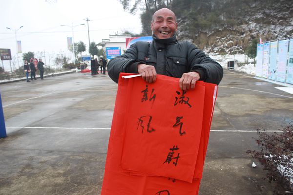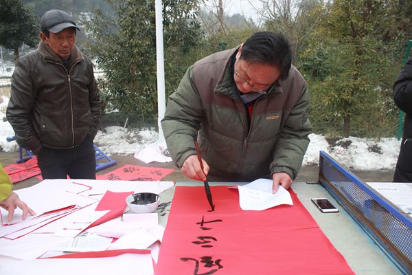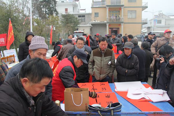 “一身正气辞旧岁两袖清风迎新春”、“惩除腐败顺民心党风廉政国太平”、“守廉守正合家福持勤持俭万事兴”、一张张书法家手中的红纸转眼就变成浸染墨香的廉政春联,转交到老百姓手中,老百姓美滋滋的看着自己的春联儿,对着书法家们竖起了大拇指,连连称赞,“写的真好,有了党,我们现在是真的享福咯”。近日,正值新春佳节即将来临之际,旌德县组织党员和书法爱好者送廉政春联下乡,把“廉”的祝福送进千家万户。