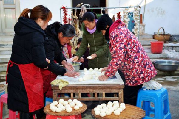 在新四军二师师部所在地革命老区来安县半塔镇大刘郢村,自编自导自演一场以红色为主题的乡村春晚,除了唱红歌、演小品、写春联等,还融合了洪山戏等地方剧种,深受村民喜爱,已成为乡村新年俗。