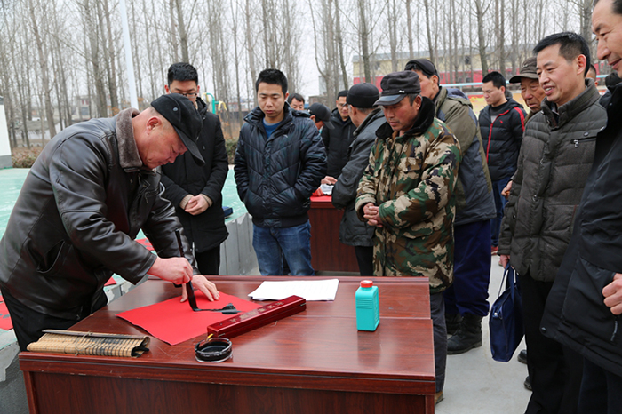 送一幅春联。邀请本单位书法爱好者,现场挥毫泼墨,为群众送廉政家风家训、“福”字等春联,将新年的祝福送到群众手中,也营造了浓厚的廉政氛围。
