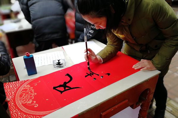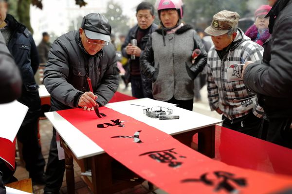 书法爱好者挥毫泼墨,书写下政通人和的新年愿景。