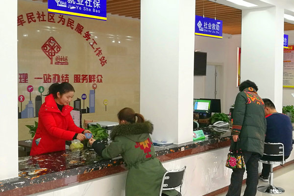 军民社区便民服务大厅年轻党员,默默坚守岗位,为春节返乡人员发放社会保障卡。