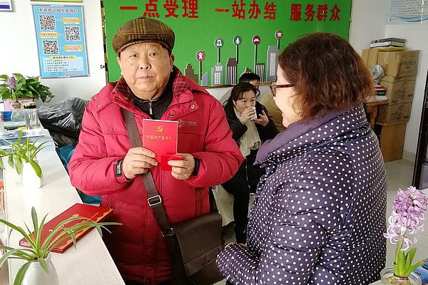 腊月二十八,建来社区外出老党员王云返乡,主动到社区交纳党费,并领取新《党章》。
