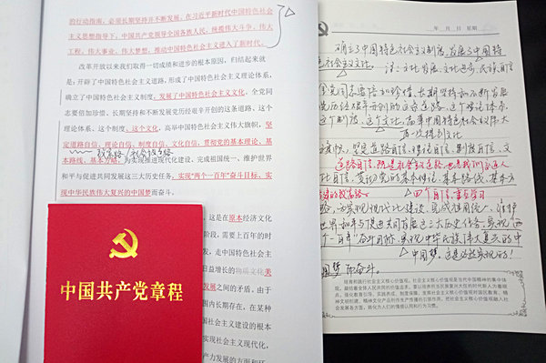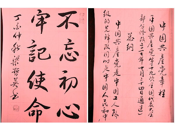 区民政局退休干部“不忘初心、牢记使命”,用“心”书写新《党章》。