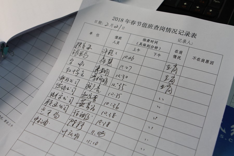 春节值班值守查岗情况记录表