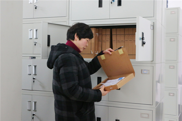 信访室工作人员在认真核查和整理归档信访卷宗