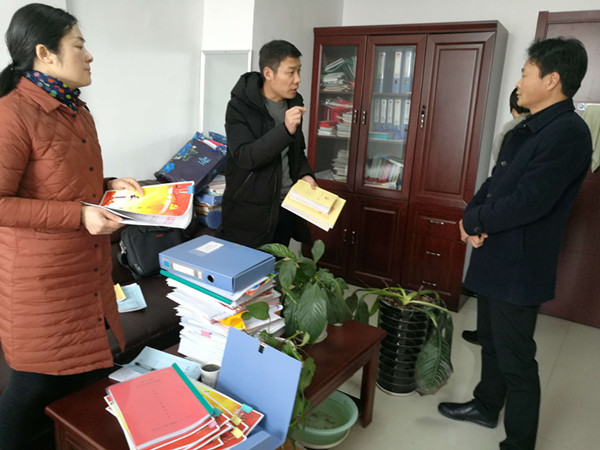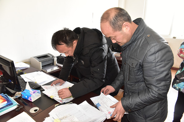 督查组查阅会计凭证、食堂报销单据。