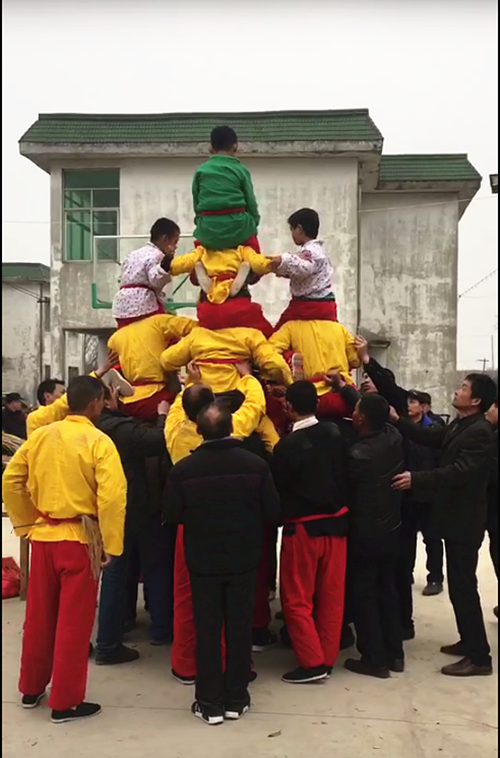 在峨桥镇东湾村,“马灯”又叫“送子马灯”,马灯队伍里会邀请村里的小孩子穿上“奇装异服”,“童子”走村穿巷送“祝福”。农村家里有要结婚或者准备添孩子的家庭都要“接灯”,寓意“多子多孙”、“人丁兴旺”。