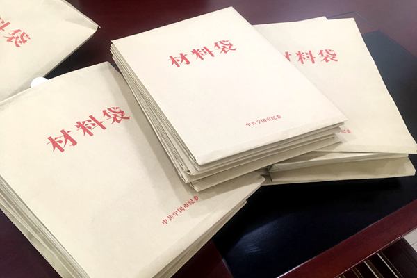 会前,相关材料已完成装袋,正安静地“等待”着被运送到会场。