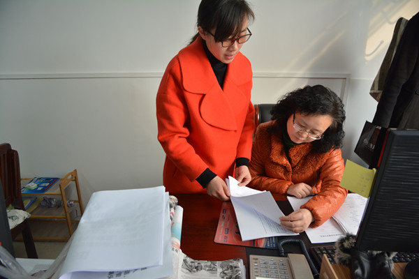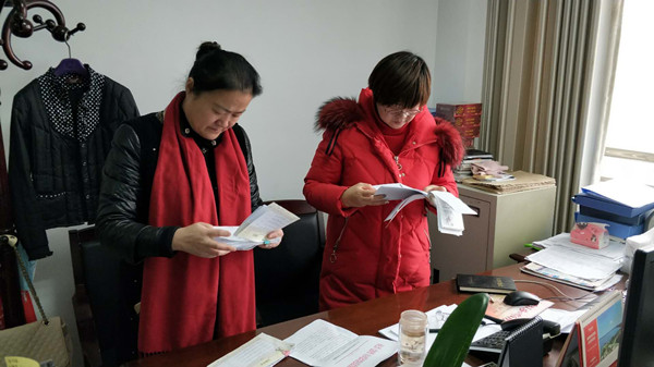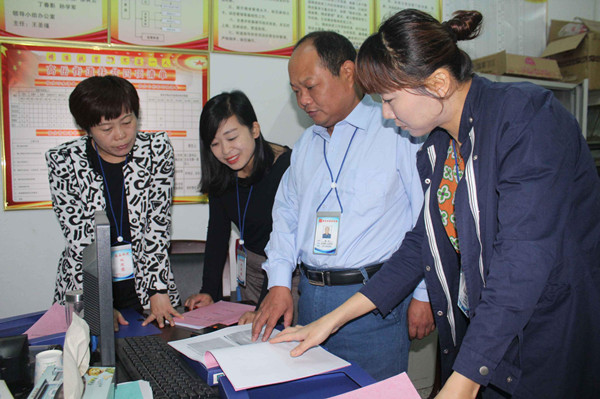 杜集区纪委监委女干部们排查扶贫领域问题线索。